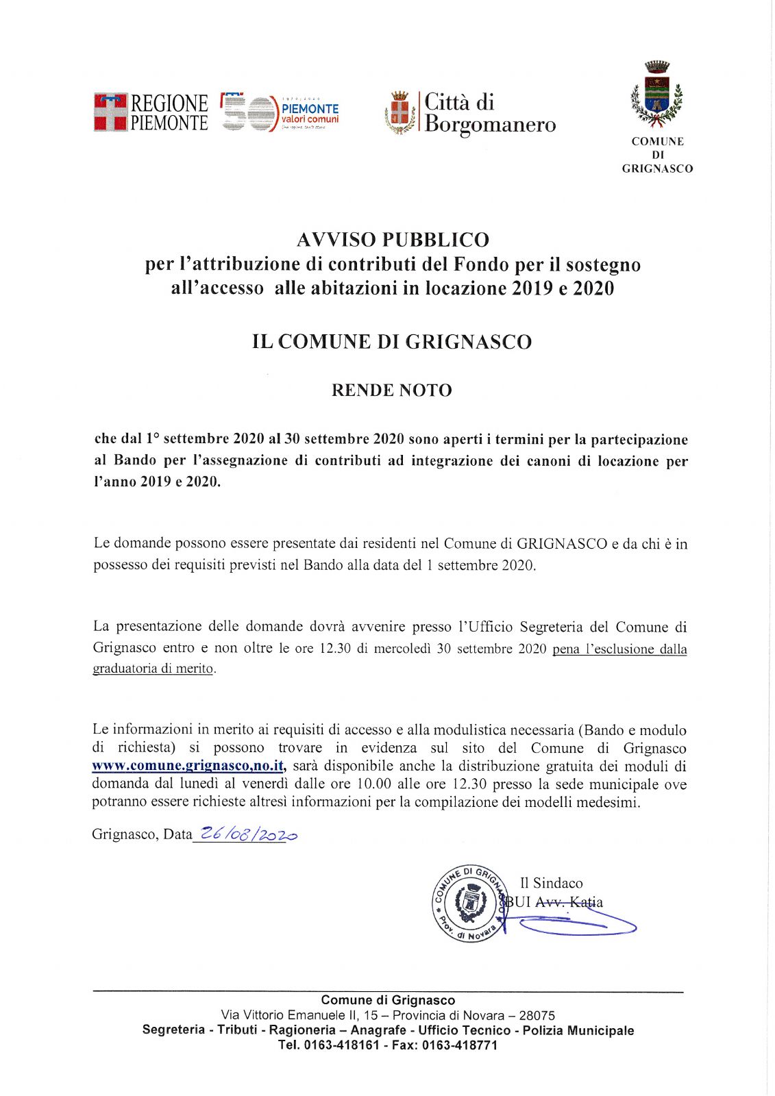per l’attribuzione di contributi del Fondo per il sostegno all’accesso alle abitazioni in locazione 2019 e 2020