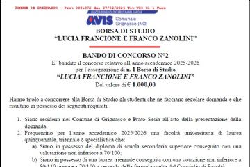 A.V.I.S. - Sezione Comunale di Grignasco - Borsa di studio “Lucia Francione e Franco Zanolini”