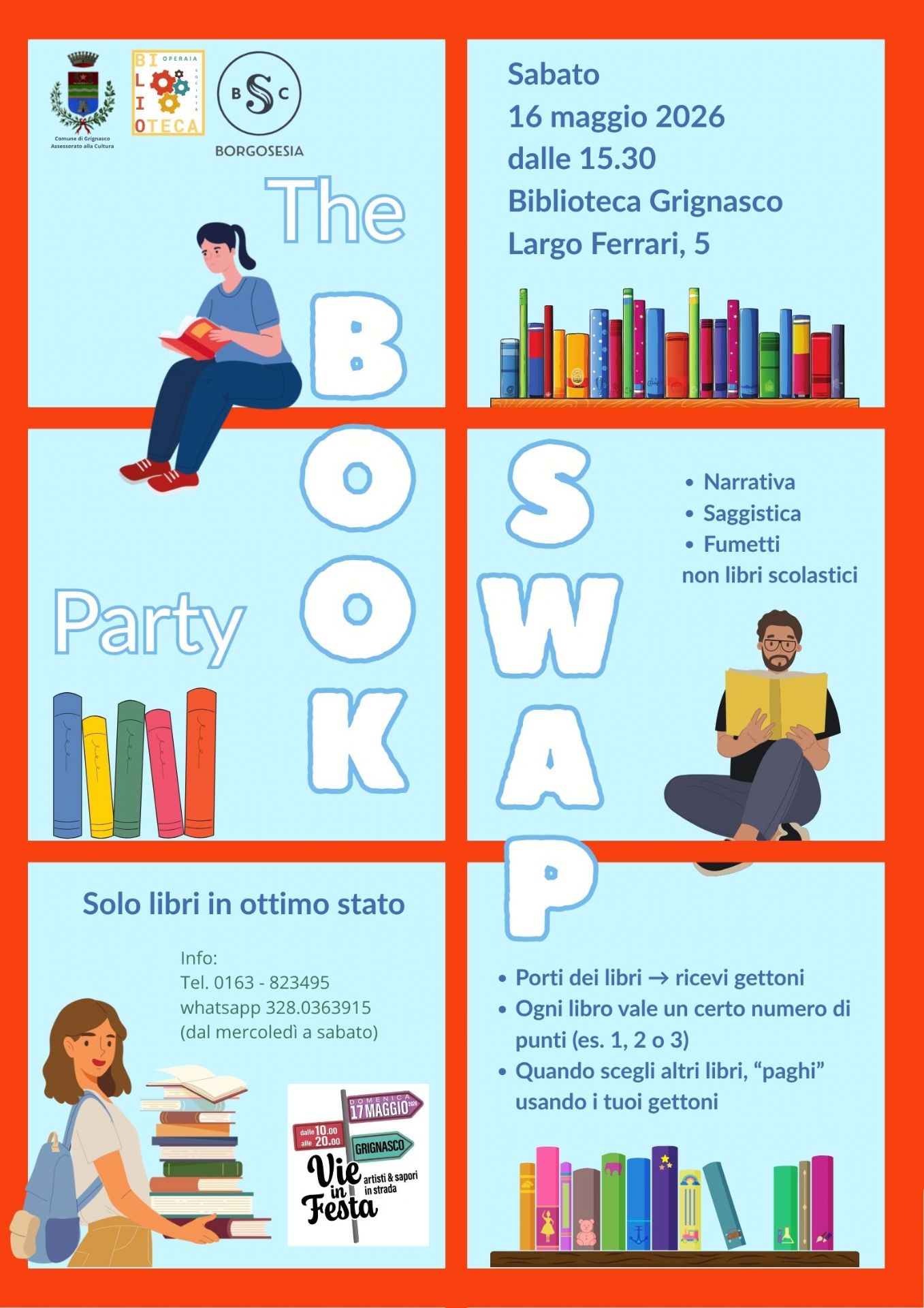 Amanti della lettura, segnate questa data in calendario: sabato 16 maggio 2026! Vi aspettiamo a partire dalle ore 15:30 presso la Biblioteca di Grignasco (Largo Ferrari, 5) per un pomeriggio dedicato alla condivisione e alla scoperta di nuove storie.