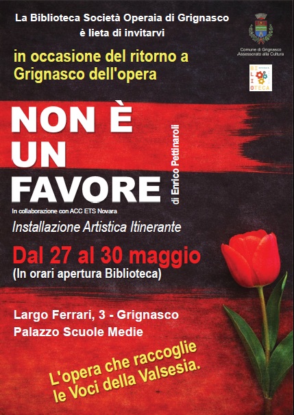 Durante le giornate della sua permanenza in biblioteca sarà possibile lasciare una parola, una frase, un pensiero… contribuendo così a trasformare l’opera stessa e a riflettere su come liberare la donna da tante gabbie, non sempre visibili.