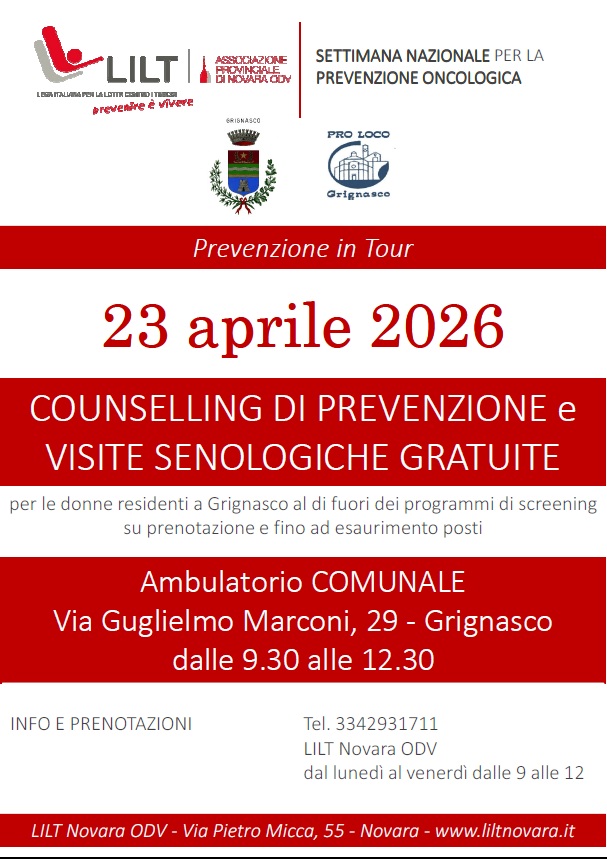 Per prenotare la visita, è possibile contattare LILT Novara ODV: