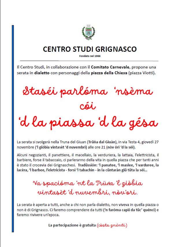 Serata di conversazione in dialetto con i personaggi della Piazza della Chiesa